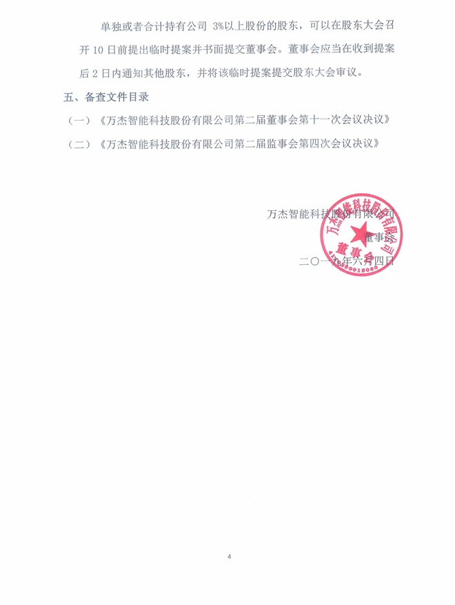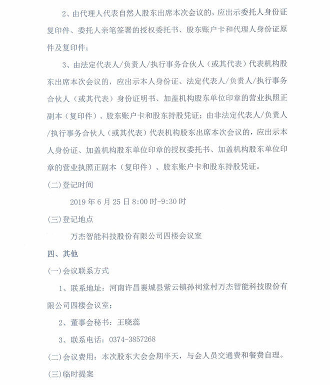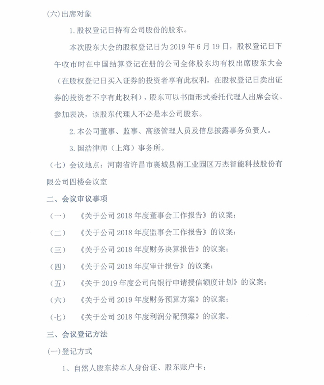 万杰智能:关于召开2018年年度股东大会的通知公告