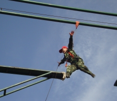 高空断桥:在距离地面8米的高空搭起了一座独木桥,而这个桥的中间却是断开的,间距1.2米-1.4米,要求每个队员爬上8米的高空后,在空中跃起,从桥的这侧跳到另一侧, 虽然身上挂满了安全保护措施,但在高空跳跃,每个人都产生了或多或少的恐惧感,从爬上去站到高空已是一次极大的考验,从高空跃到对面更是一次心理的挑战。有的同伴从满脸通红到面色苍白,有的战战兢兢不敢站立,有的站了许久不敢跃起,还有的上去之后直叫:“我有恐高症!是真的……”在队长的带领下,我们为每一个参训的队员“加油”,目送他们一个一个爬上摇摇晃晃的高杆,然后不断呼喊他们的名字,每完成一个步骤都热烈地鼓掌高呼。结果,全队20多名队员都顺利完成了这项训练,zui后大家用热烈的掌声庆贺自己的成功和胜利。 此项目心得体会:表面看起来很难的事,其实并没有想象中那么可怕。在工作、生活中,遇到困难并不可怕,怕的是失去解决困难的勇气和信心!心理的障碍是zui难逾越的,我们如果要成为强者,首先就必须挑战自己的恐惧感,当我们豁出去一搏,勇敢地跨出一小步,也许就能抓住属于自己的机会,实现人生一大步的跨越。