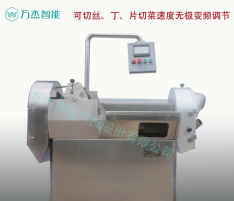 ■产品特点: 离心式切片机构适用于瓜薯类硬菜的切片,片厚可在一定范围内自由调节,竖刀部分可将叶类软菜或切好的片加工成不同规格的块、丁、菱形等各种形状。切菜长度可通过PLC触摸屏在一定范围内任意调整。因竖刀模拟手工切菜原理,加工表面平整光滑,成形规矩,所切蔬菜的组织细胞不被破坏,可保持原有的新鲜。 该机操作简单,维修方便,适应性强,便于掌握,是理想的蔬菜加工设备。 切菜速度可无极变频调速。