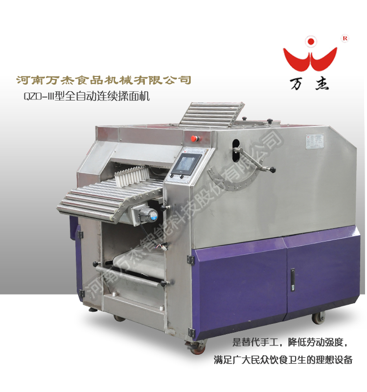 ■产品性能及特点 本产品为手动/自动两用连续压面机,适用于含水率40~60%的面团揉制。可根据情况设定压面次数为1~99次;可以调整压面厚度为0.8~1.8cm;能够自动均匀地向面带上抛洒面卜,可设定抛洒面卜量的多少; 可自行设揉面的时间(0-30sec);装有安全防护栏及紧急安全开关,可有效保护操作者的安全;面带在机内呈 S型连续式折迭辗压,能增加面皮的筋性、组织密度、延展性及光泽,也可与各式输送机(另配)搭配,形成输送面带的系统。 ■主要技术参数 生产效率:10-18kg/次 配用动力:4.3kw 压辊调节范围:10-25mm 额定电压:380v 功 率:3.29Kw 频 率:50 Hz 重 量:600 kg 外形尺寸:1260*1500*1450mm ■适应范围 适用于面食加工,揉压各种酥、韧性面团等。是食堂、饭店及面食加工作坊的得力帮手,可替代手工,降低劳动强度,是满足广大人民饮食卫生要求的理想设备。 |